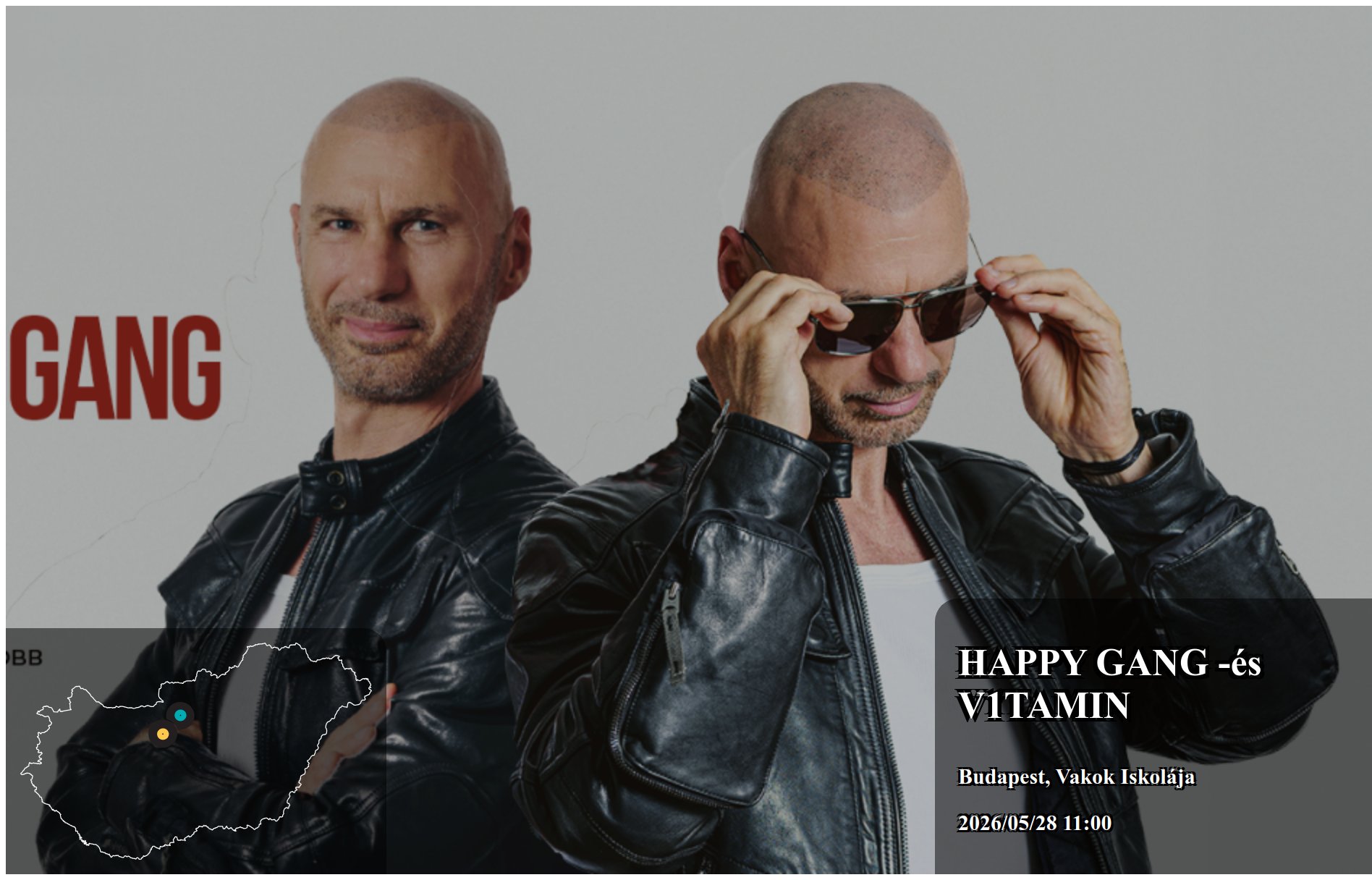 HAPPY GANG -és V1TAMIN 2026/07/18 20:30 Hercegszántó Szabadtéri színpad fellépés - 2026.07.18. | Koncertbooking