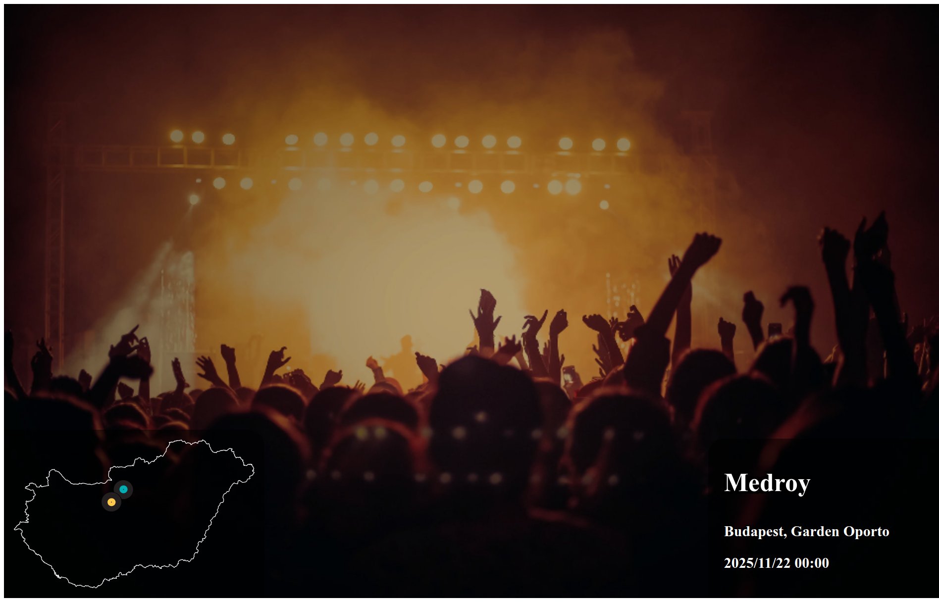 Éjfél utáni fellépések esetén a helyes keresési dátum az újonnan induló nap dátuma. Pl. Egy szombaton kezdődő klub fellépés éjfél utáni időpontja vasárnap 01:00 kor keresendő!